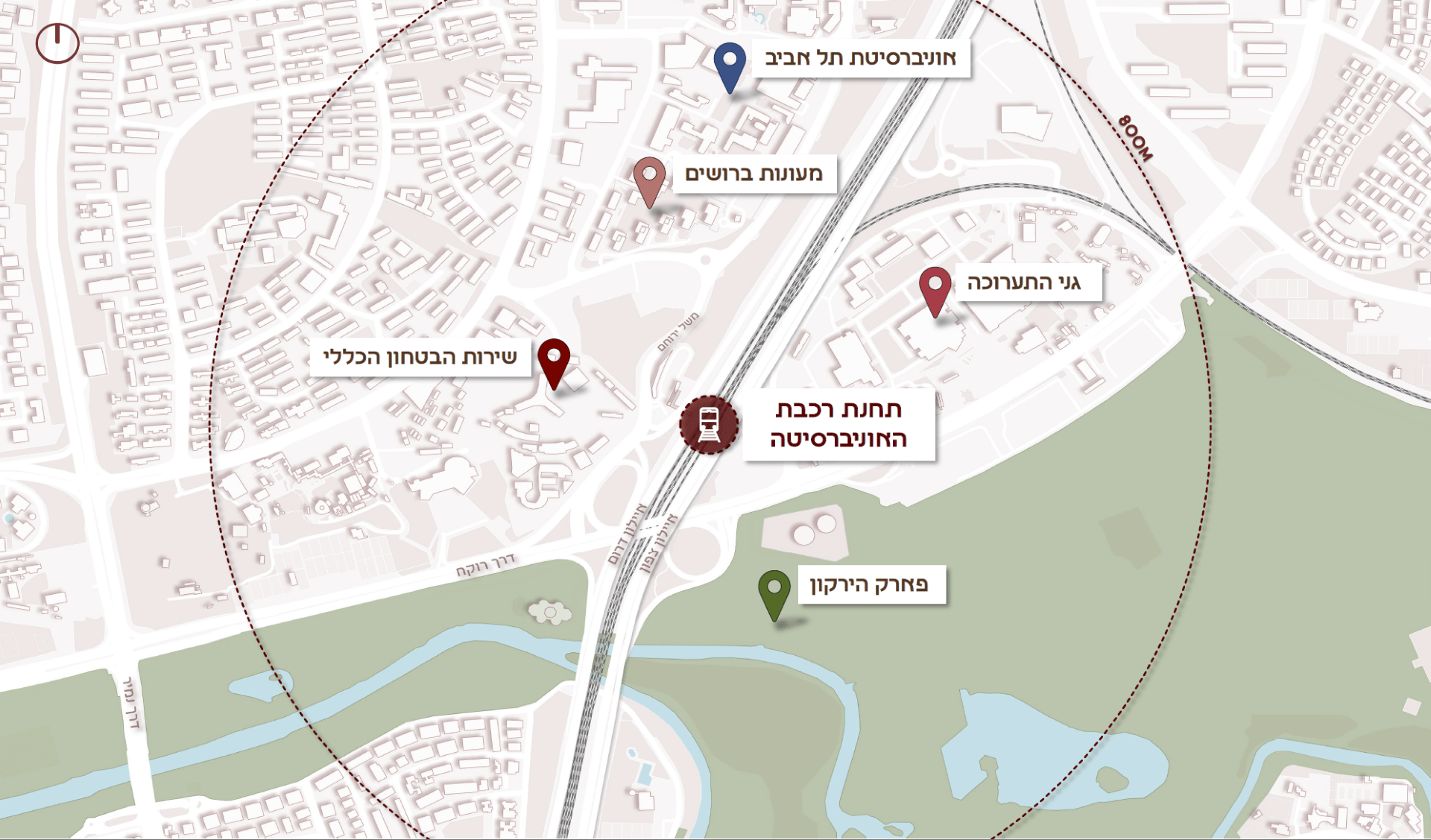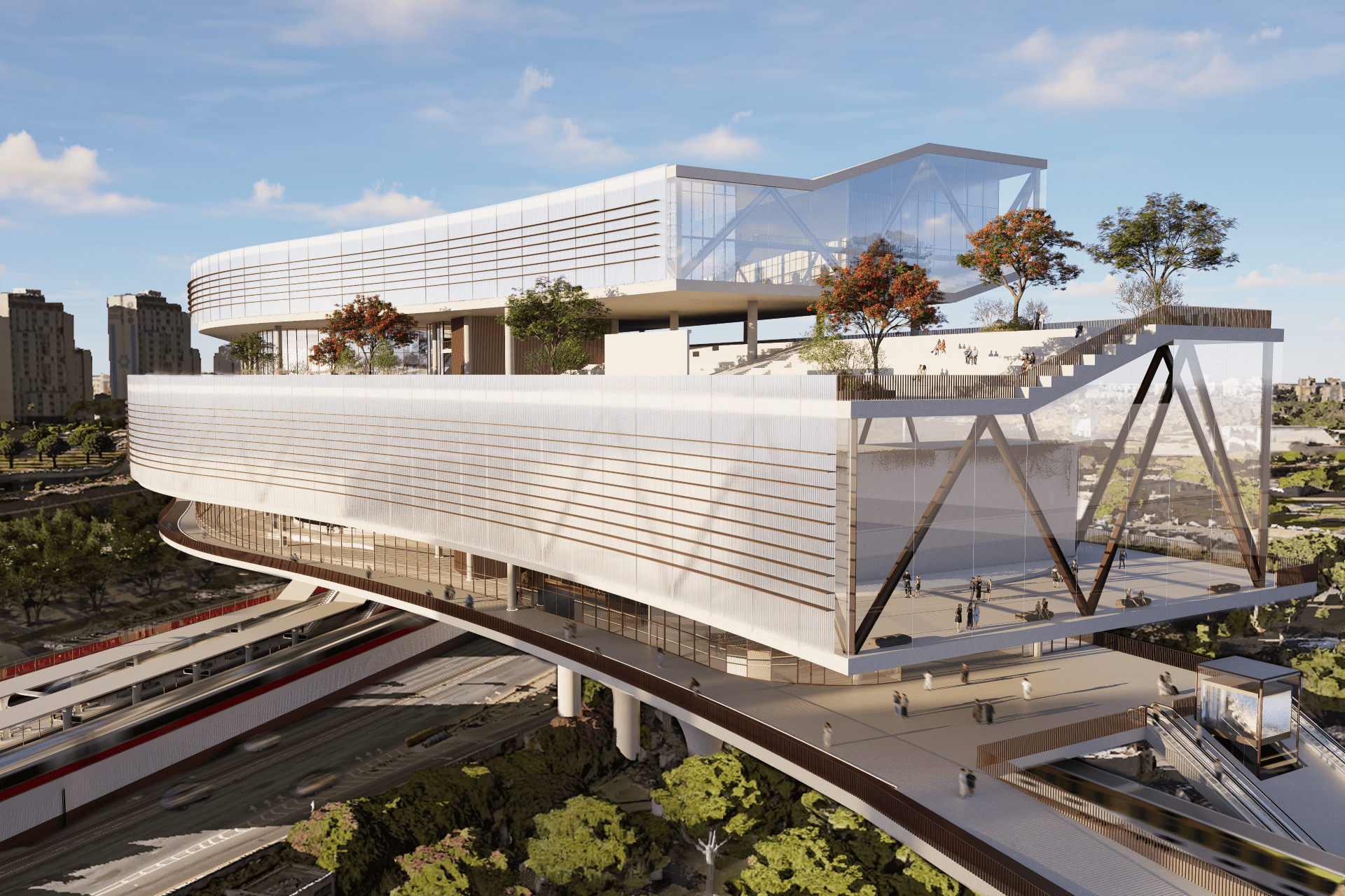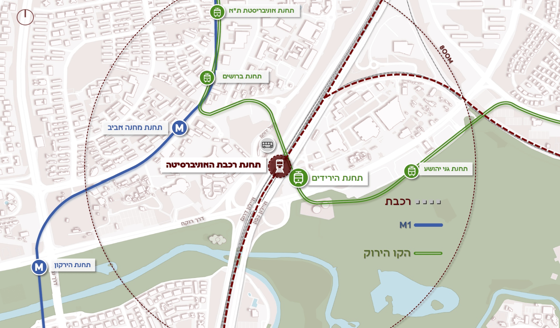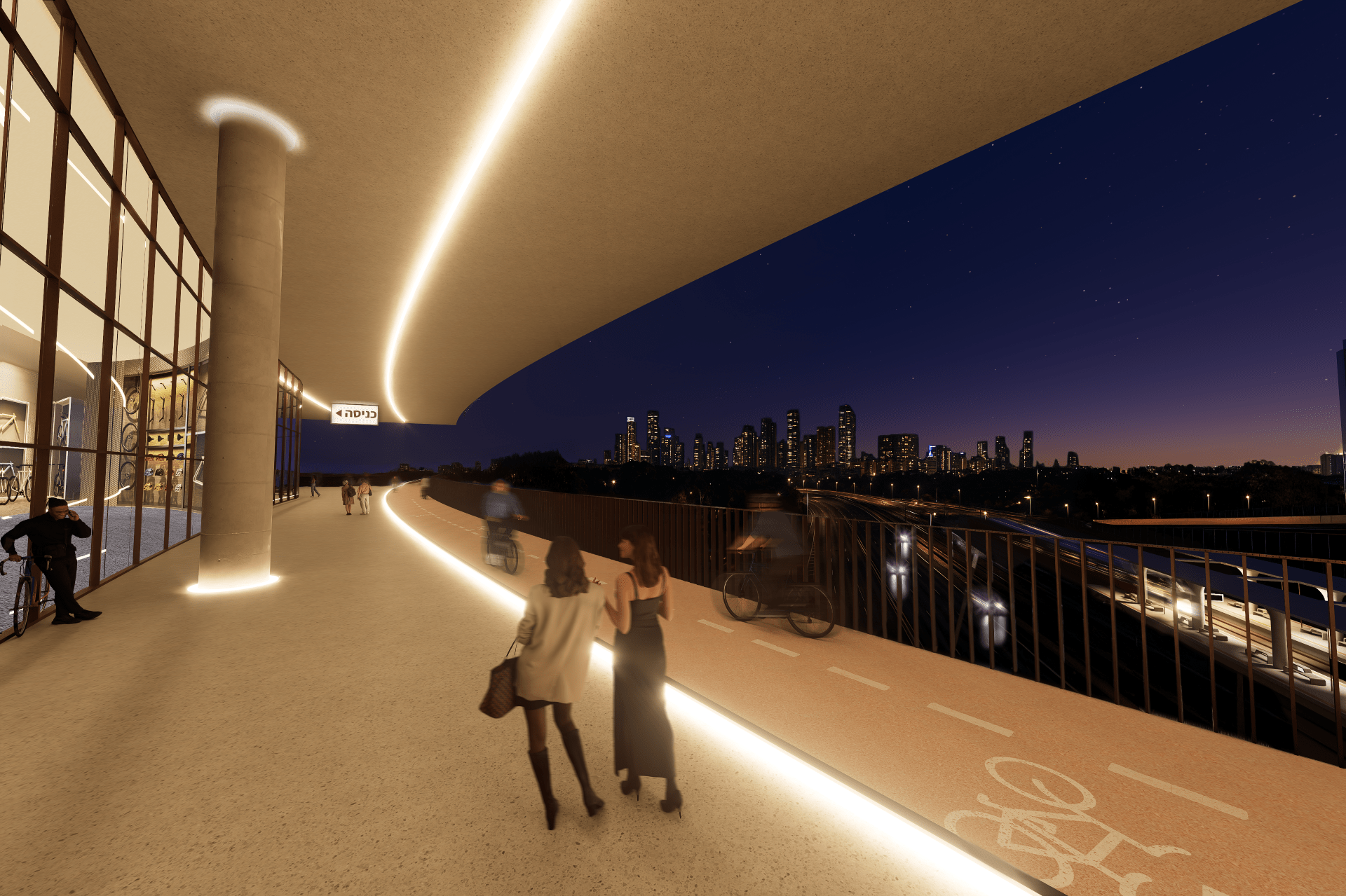 הפרויקט מתמקד בקידום קישוריות עירונית בתחנת רכבת האוניברסיטה – שער הכניסה הצפוני לתל אביב. מדובר במרכז תחבורה משולב (HUB) המאפשר מעבר מהיר ויעיל בין רכבת בין־עירונית, רכבת קלה, רכבת מהירה ואוטובוסים. המבנה, הפועל כגשר מעל איילון, מחבר את גני התערוכה עם האוניברסיטה ומשלים את הרצף העירוני עבור הולכי רגל ורוכבי אופניים. מעבר להיותה נקודת מעבר, התחנה מתפקדת כמרחב עירוני חי ודינמי המחבר בין תרבות, אקדמיה וקהילה, ומייצרת חוויית תנועה רציפה וקשרים חזותיים ברורים בין חלקי המבנה השונים.