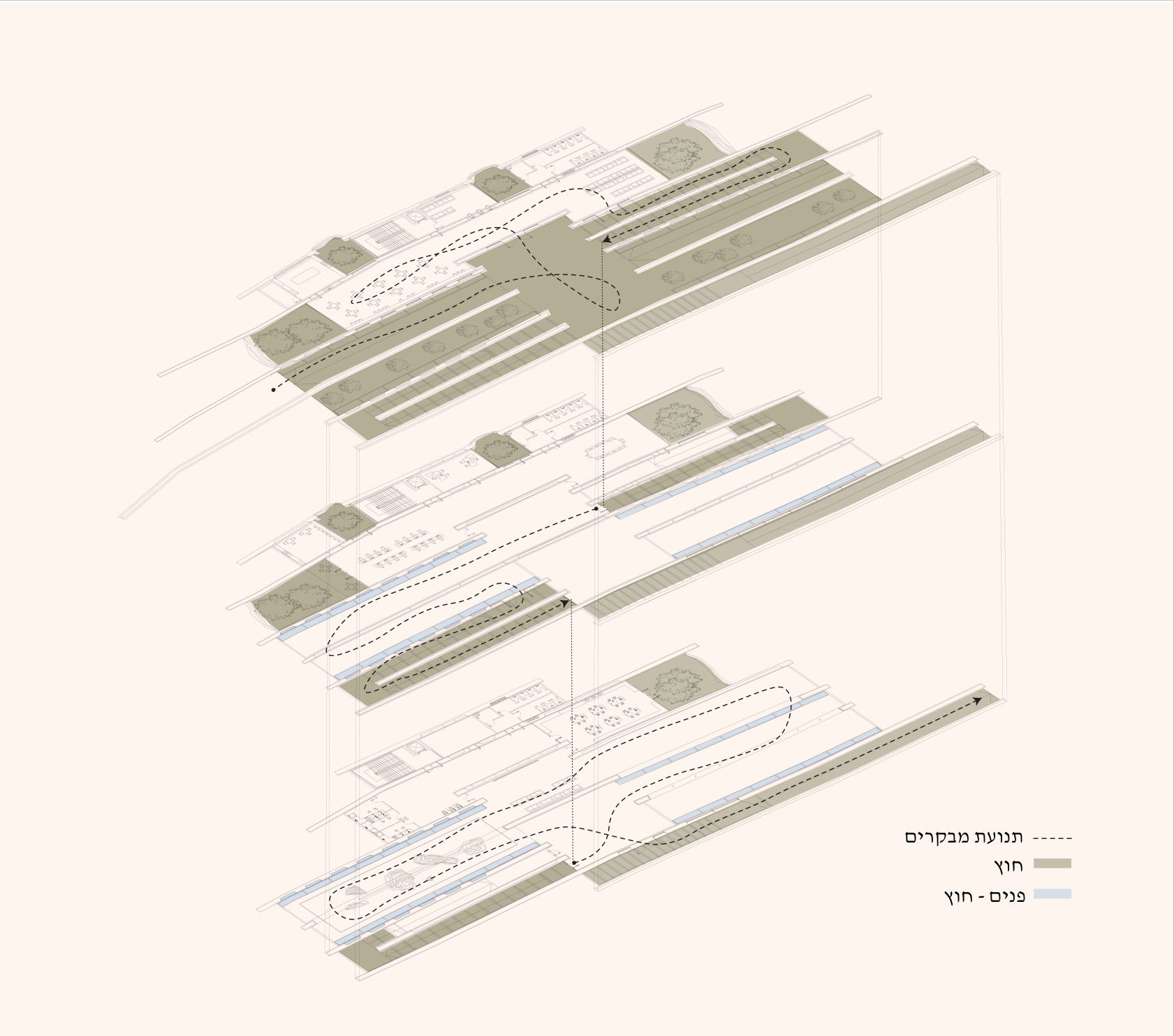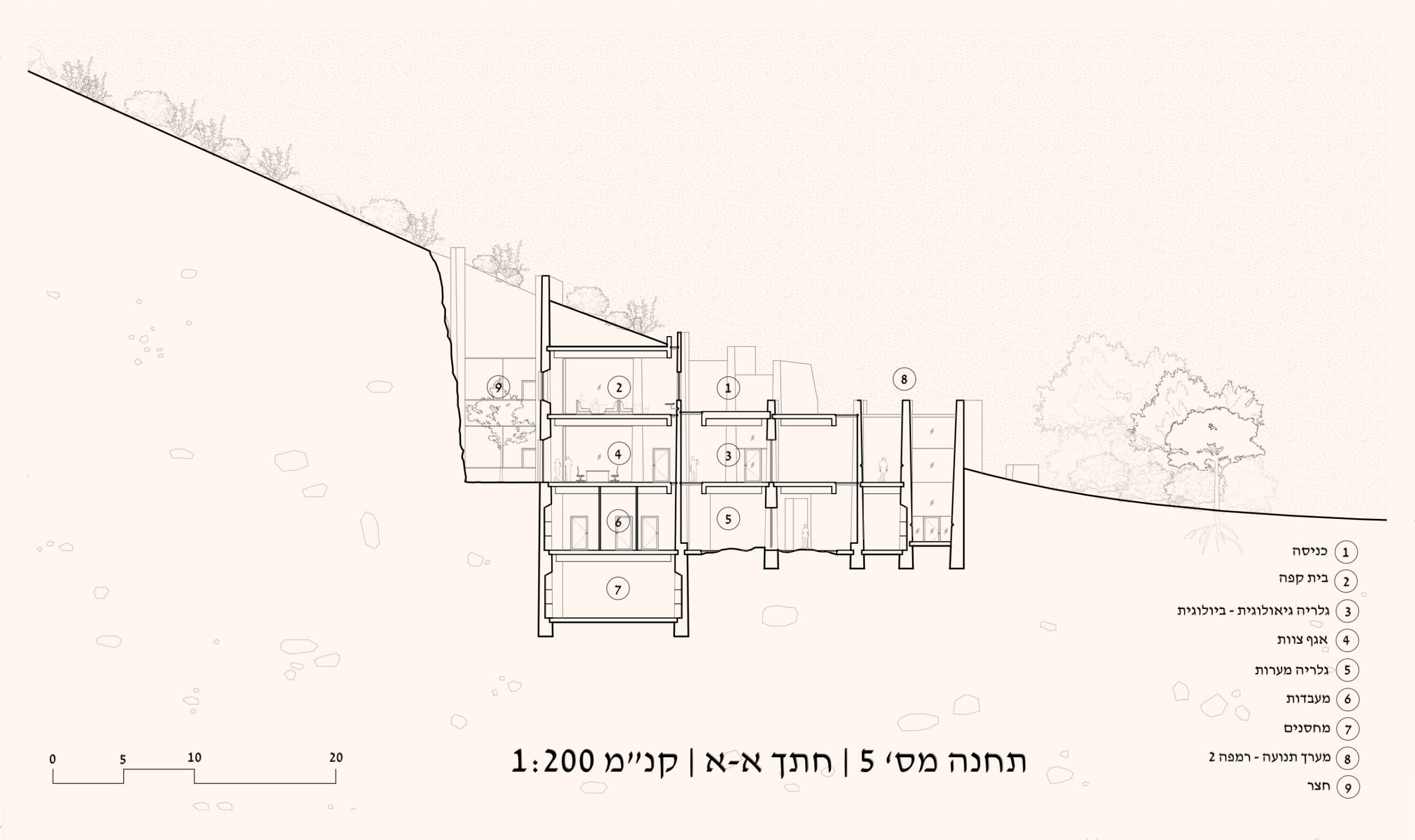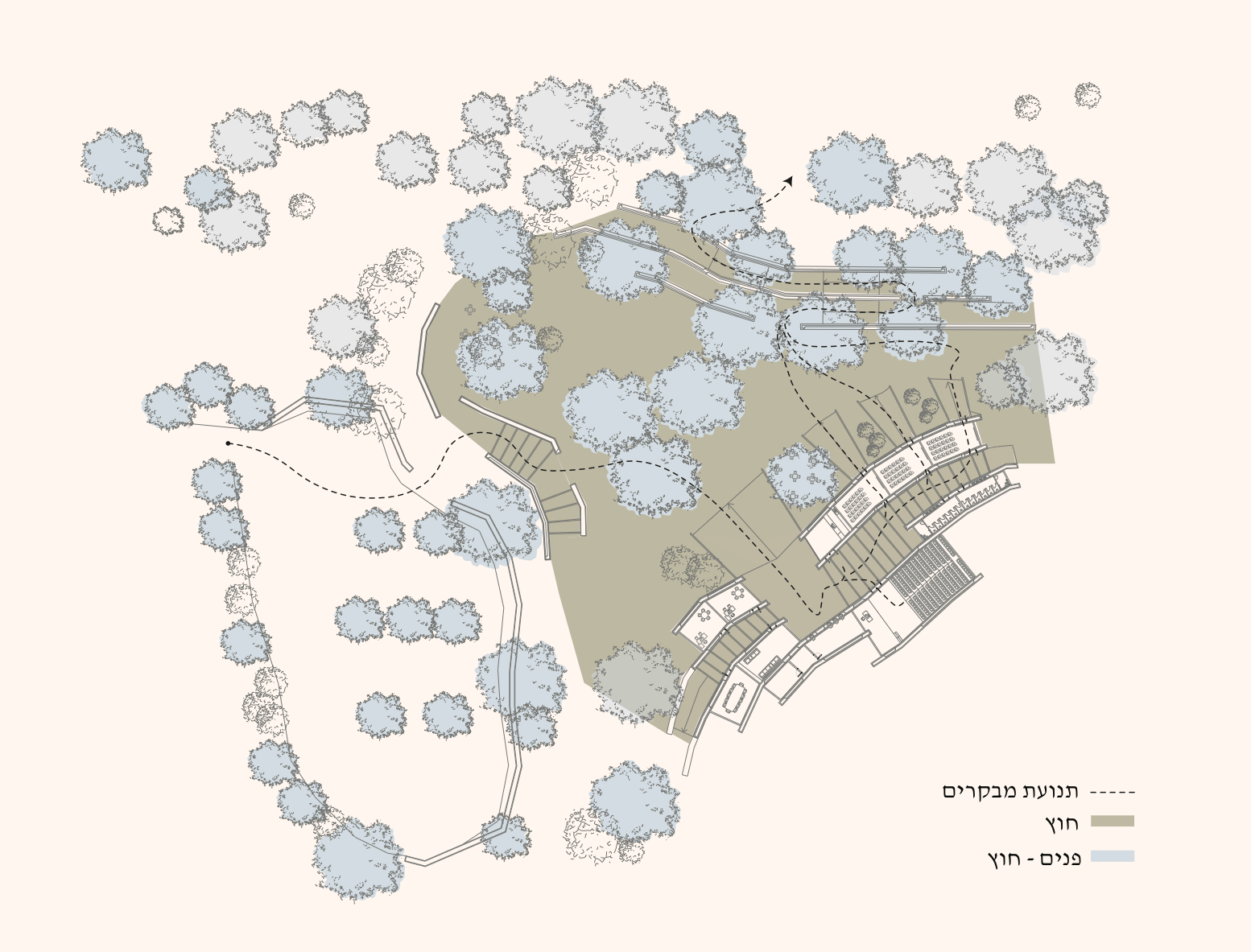 The project proposes turning the Nahal Mearot site into a “walking museum.” Not a static white box, but a path where knowledge is absorbed through the body: walking, breathing, light, sound, and the touch of stone. Its starting point is phenomenological: to awaken full presence and attentiveness, to break ingrained habits of automatic perception, and to return the experience to a direct encounter with place and time. Among the guiding phenomenological tools is a shifting template, a recurring grammar of inside – outside – inside – outside that appears again and again, yet takes a different form each time. In this way a consistent language emerges that manages to “use the template to break the template”: the repetition provides orientation, while the subtle change sharpens awareness. The intervention is minimal and precise – the minimum necessary for maximum experience – so that nature, the caves, and time can act. The content of the path is woven from three interlacing threads: the geology and biology of Mount Carmel; the archaeology and emergence of humankind; and the living landscape as continuous testimony. The path teaches through the experience itself – compression and release, framing, light, and traces of time – seeking to create a profound connection between person, landscape, and history; not mere information, but a bodily and mental memory.