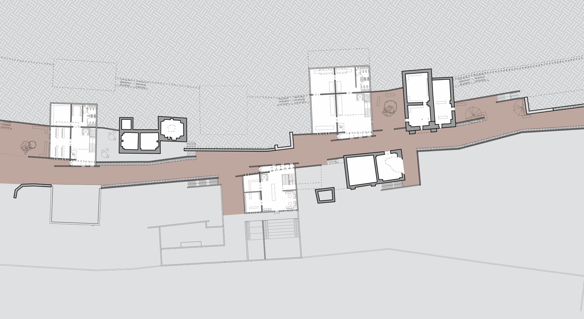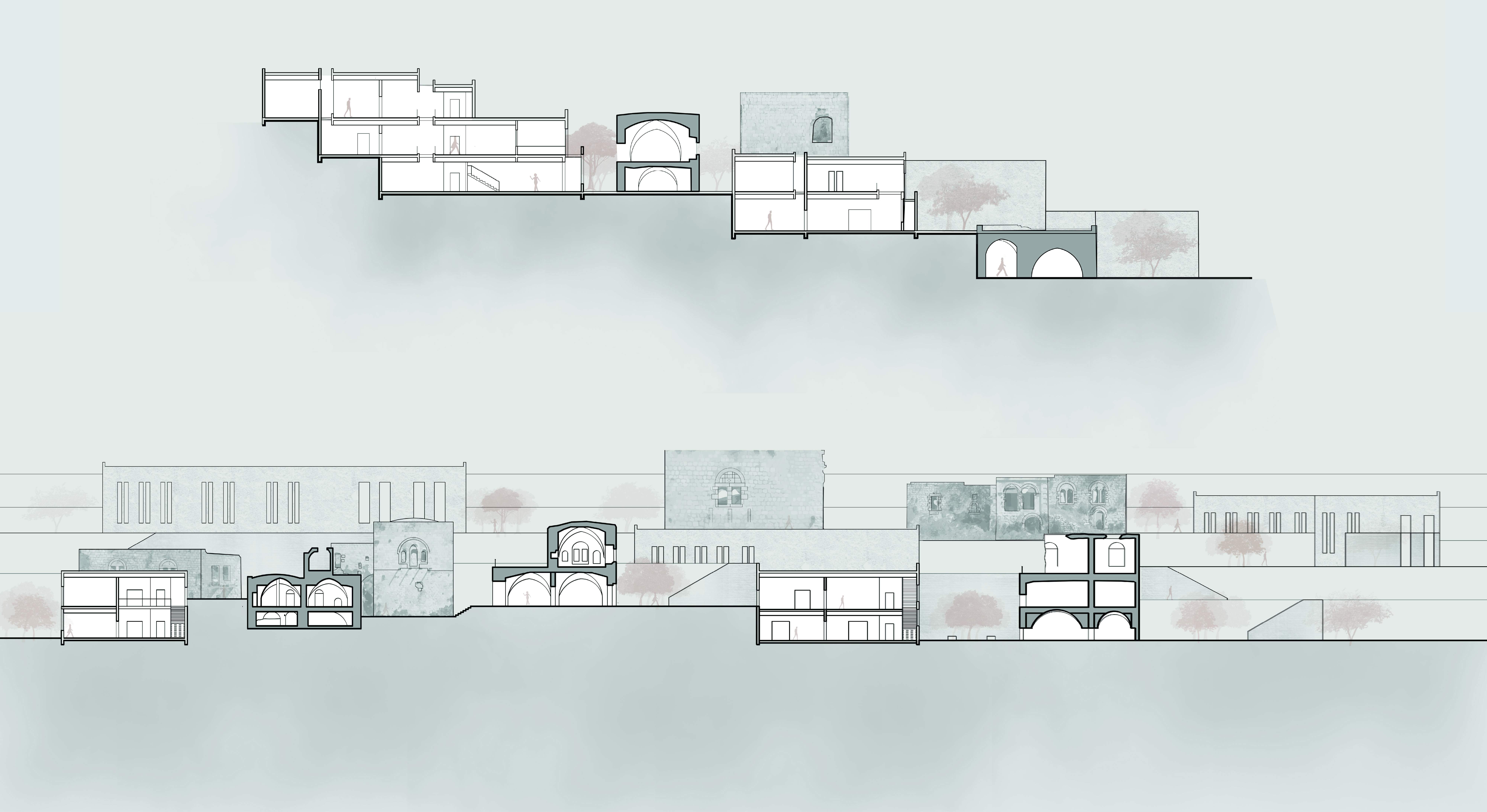 The project was born from listening to the silence of Lifta — a depopulated Palestinian village in Jerusalem whose stones still bear the traces of destruction and absence. The architectural intervention does not seek to restore or erase, but to give presence to what is absent and allow memory to breathe within the body of the place. The program weaves together spaces of testimony and remembrance, areas of encounter and dialogue, a place where body and voice find a stage, and a realm where scent and taste become another language of memory. Around them unfolds a system of learning, research, and creation that enables a deep reflection on the remnants of the past. All these elements intertwine through a network of pathways and openings that follow the village’s topography, connecting existing structures with new additions. Thus, walking through the site becomes a journey between the remnants of memory and renewed life — a space where past and present coexist, forming a landscape of memory, healing, and continuity.