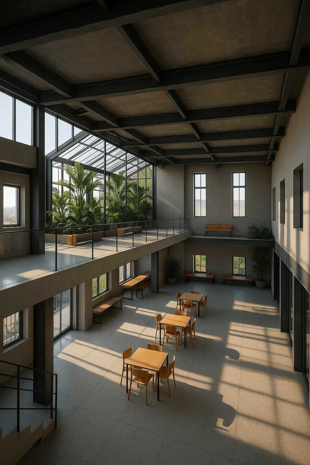 The building was designed to fully support the educational approach of learning in small groups. I started with a grid that divides the building into identical spaces and then, using the same technique, "stretched" their boundaries – combining and connecting rooms as can be seen here in the model. The division creates spaces of varying sizes and also allows light and internal courtyards to enter the building. The campus reflects the educational vision: collaborative, personalized, and experiential learning. Architecture is not just a structure – it is a pedagogical tool, a space that shapes consciousness, and allows students to grow through exploration, sharing, and creation."