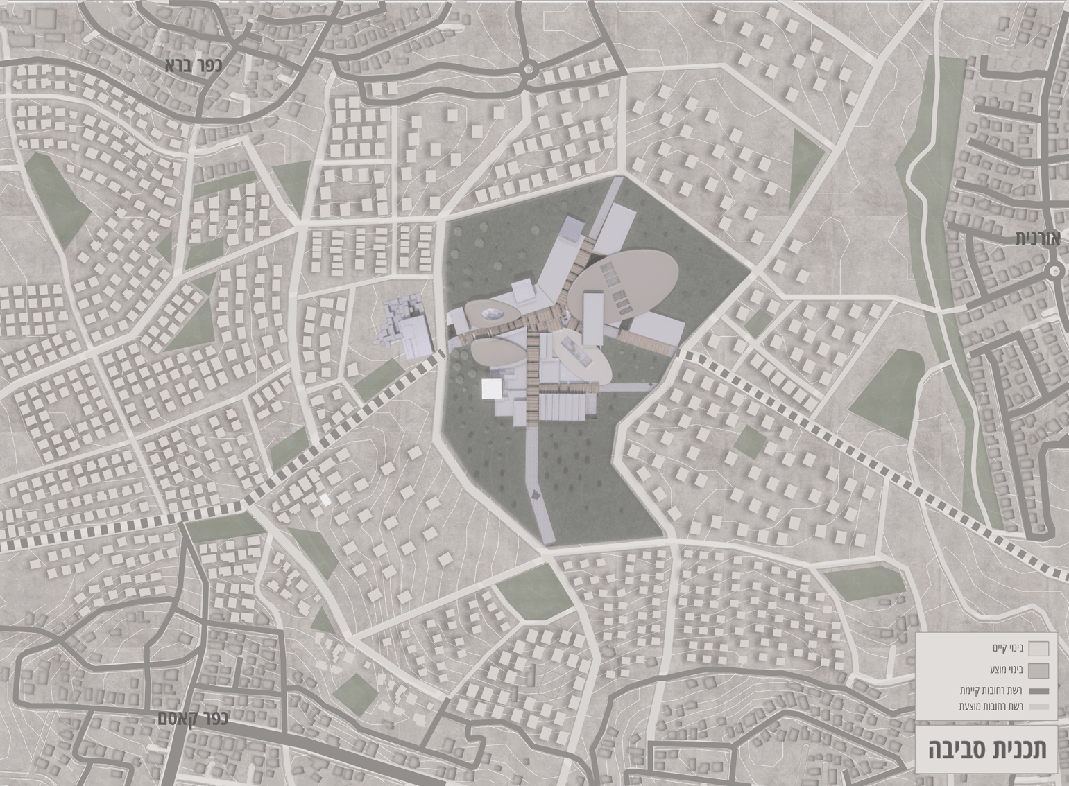 The project addresses the phenomenon of Arab youth migrating from villages to modern urban centers, driven by various personal and social factors. During this transitional phase, their personal and traditional identities may be at risk, as they experience a process of identity resonance and the formation of a dual identity. The proposed neighborhood aims to preserve the traditional identity of young people while engaging with the global identity of the 21st century. It is envisioned as a unique and protective space that integrates local and traditional identity with contemporary values, creating a meaningful connection between education and recreation. The project functions as a social and cultural magnet, enabling dialogue between different groups and fostering a multi-dimensional identity experience. This space, which merges spatial and virtual connections, blurs existing boundaries and offers youth an opportunity to explore and shape their personal, traditional, and communal identities within a dynamic and vibrant environment.