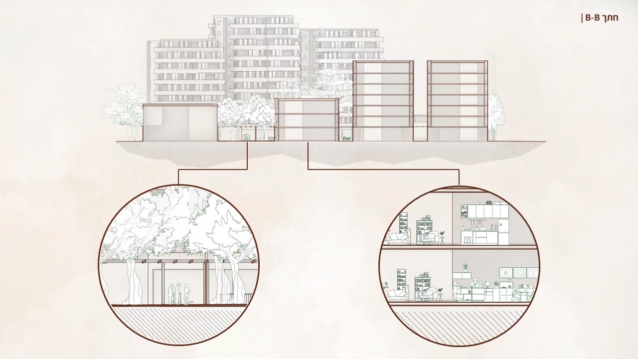 הקשיש איננו רק דמות בהווה – הוא בבואה של כולנו בעתיד הרחוק ולחלקנו ממש 'המחר'. כשאנו מתכננים מרחבים שמכילים, מכבדים ומקדמים את הזקנה, איננו רק דואגים לאחר, אלא יוצרים עתיד מכיל, אנושי וראוי גם לעצמנו. האדריכלות הופכת לכלי של חמלה, הדדיות ותחזית. הפרויקט מבקש לעצב מנגנון מרחבי-חברתי המבוסס על ערכים קהילתיים אותנטיים שמעודדים את דיירי הסביבה לקחת חלק פעיל בתמיכה בקשישים ע"י מערכת חוקים ויצירת מרחבים המתוכננים לייצר תלות חיובית שמחייבת את החברה לספק סיוע אמיתי ומשמעותי. יצירת פתרונות במרחב היום יומי בסביבת המגורים של הגיל השלישי מתוך הבנת האתגרים המורכבים הניצבים בפני אוכלוסייה זו בישראל. הפרויקט מציע גישה בעזרת כלים אדריכליים – תכנוניים הרואים בקשישים חלק בלתי נפרד מהמרקם העירוני והחברתי, בוחן את האפשרות ליצירת מנגנון בין-דורי המשולב בתכנון האדריכלי, כך שהמרחב הבנוי לא רק ישרת פונקציות אלא יאפשר אינטראקציות יומיומיות, פעילות קהילתית שיתופית, ורשתות תמיכה חברתיות כחלק מהחיים עצמם. עקרונות התכנון המושתתים על מערכת חוקים ותקנות, מרחבים וערכים קהילתיים בעצם 'מחייבת' דרך חיים חדשה למשתמש הרוצה לקחת חלק בה כמעין מסדרון המוביל את המשתמש לנוע בו. אתר הפרויקט משמש כמרחב אורבני שאפשר למצוא 'בכל מקום' בעיר, מתהווה לו מערך של מרחבים ציבוריים וסמי פרטיים, לצד מערכות דיור משולבות ומרחבים פתוחים המעצימים את איכות החיים ומקדמים את רווחת המשתמשים. תכנון זה מיועד לקדם חיבור בין דורות, לעודד קשרים יומיומיים ולחזק תחושת שייכות, למנוע בדידות ולתמוך עצמאות הפרט. כך, האדריכלות אינה רק מענה פונקציונלי אלא כלי לבניית קהילה הדדית, מגוונת ומשלובת בתוך מרקם עירוני פתוח ונגיש. המתחם משקף אדריכלות שיש בה אחריות אנושית וחברתית – תכנון שנבנה עבור הקשיש, אך מהווה יתרון לכלל הדיירים ולסביבה כולה.