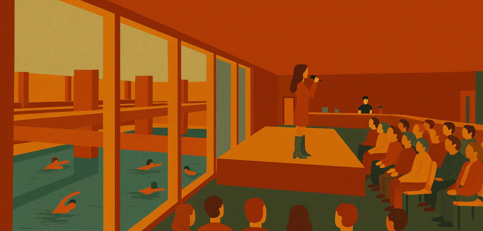 The southern building, the largest of the three, was chosen to serve as a community and sports center. Its wide footprint allowed for the design of a semi-Olympic pool, conference halls, and a theater on the lower levels, while the ground and roof floors were planned as flexible spaces for community events and diverse work areas.