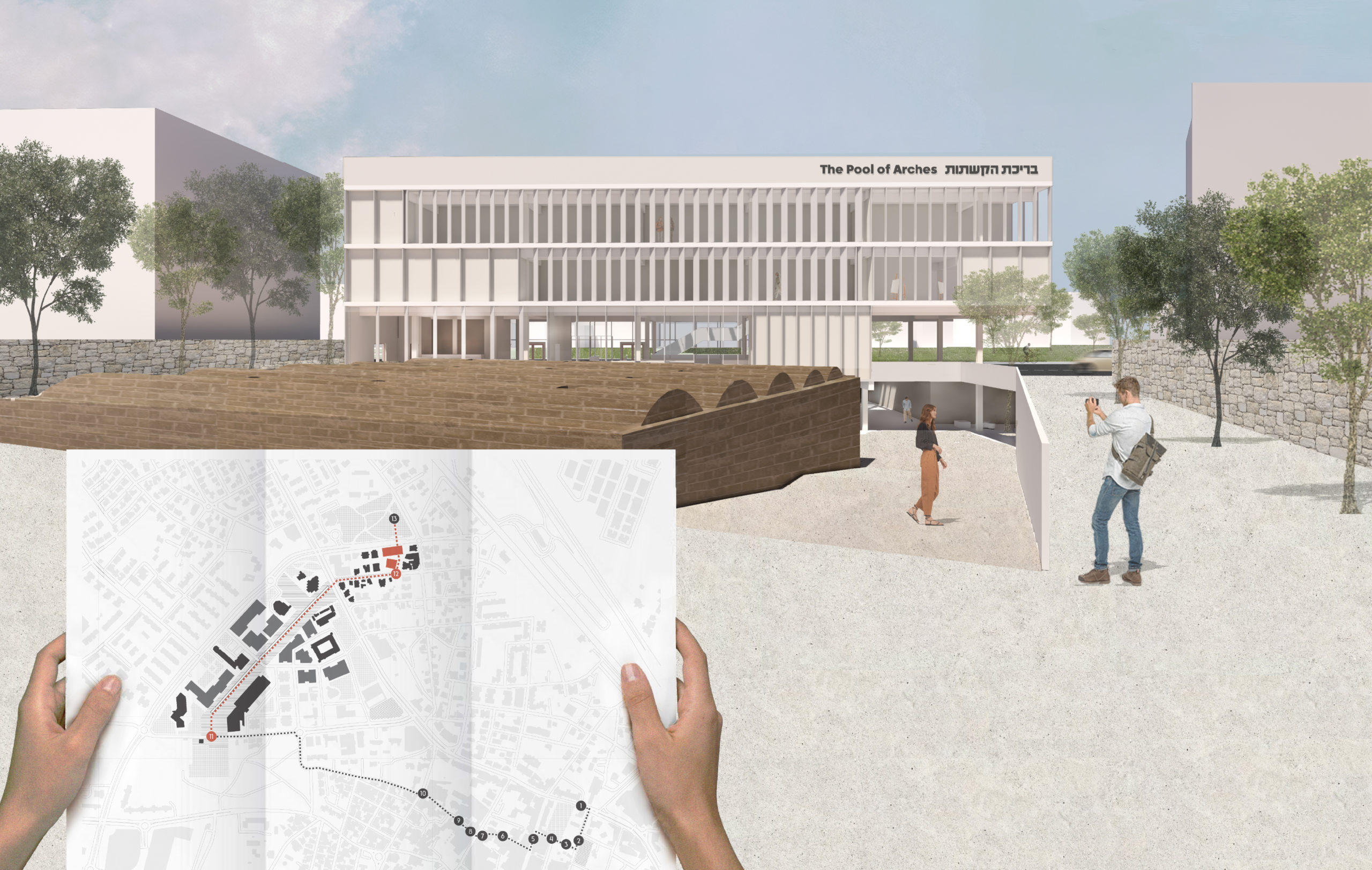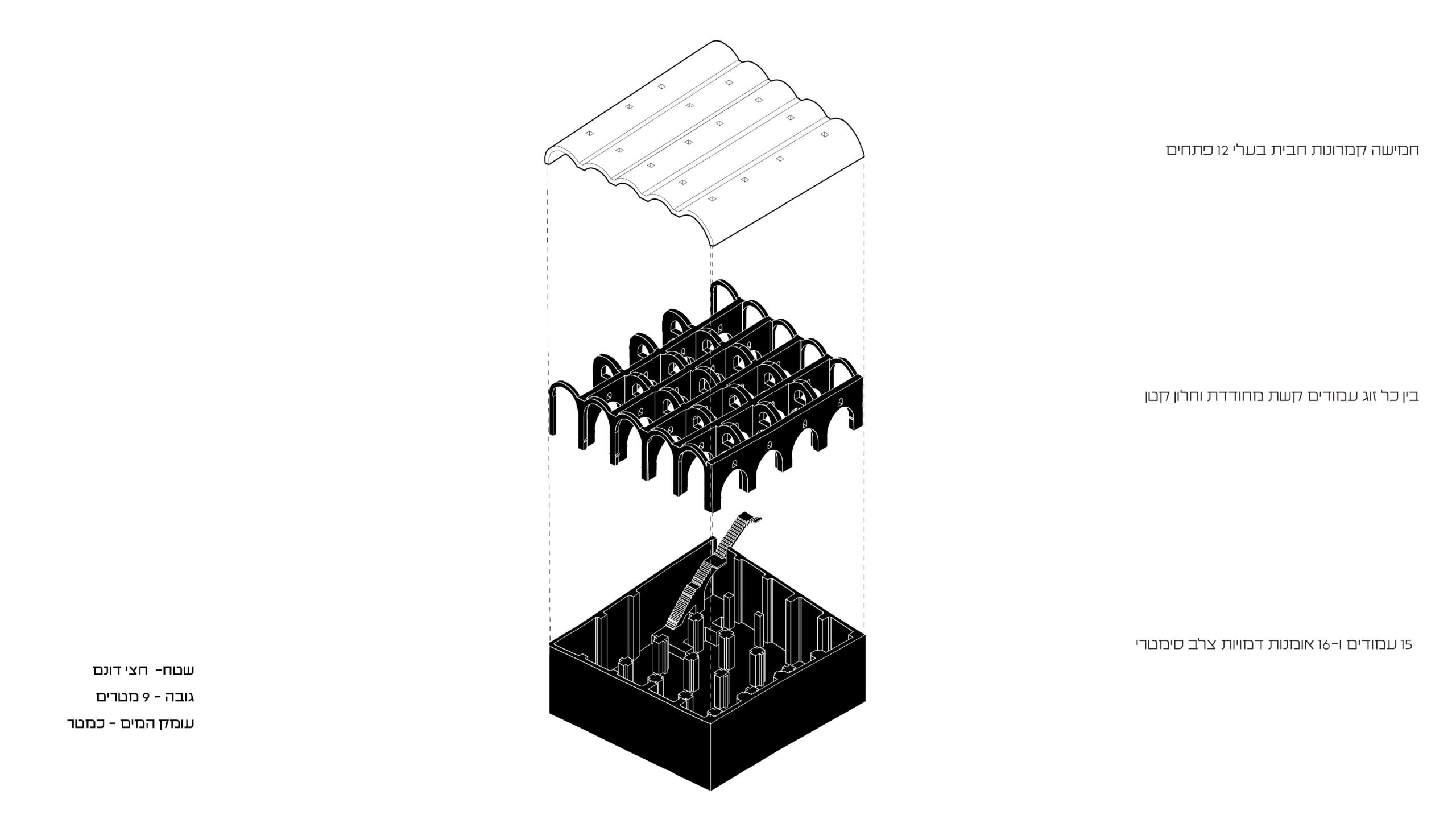 Across Israel, numerous historical water infrastructures are scattered throughout the urban landscape. These structures once formed an integral part of urban life, providing essential means for the preservation, storage, and conveyance of water – the foundation that enabled cities to exist and thrive. Beyond their functional role, they fostered vibrant community and cultural life, serving as social gathering points and key landmarks within the city. With technological advancement and changing needs, many of these structures lost their original purpose and became dormant, yet they remain embedded in the heart of the urban fabric. Despite their historical, architectural, cultural, and social significance, most stand today unused, closed to the public, and neglected – their potential left unrealized. How can historic water structures and systems once again become active participants in contemporary processes of urban renewal and development? The project poses this question within the context of the city of Ramla and its historic water system, exploring how these structures can be reactivated as urban, cultural, and social focal points at the city’s core. The intervention focuses on the adaptive reuse of the Pool of the Arches, while proposing a broader urban strategy that reconnects it with the White Tower – Ramla’s two central landmarks – through a new green axis that revives the historic water route and creates a continuous public sequence, strengthening the relationship between past and present, city and community.