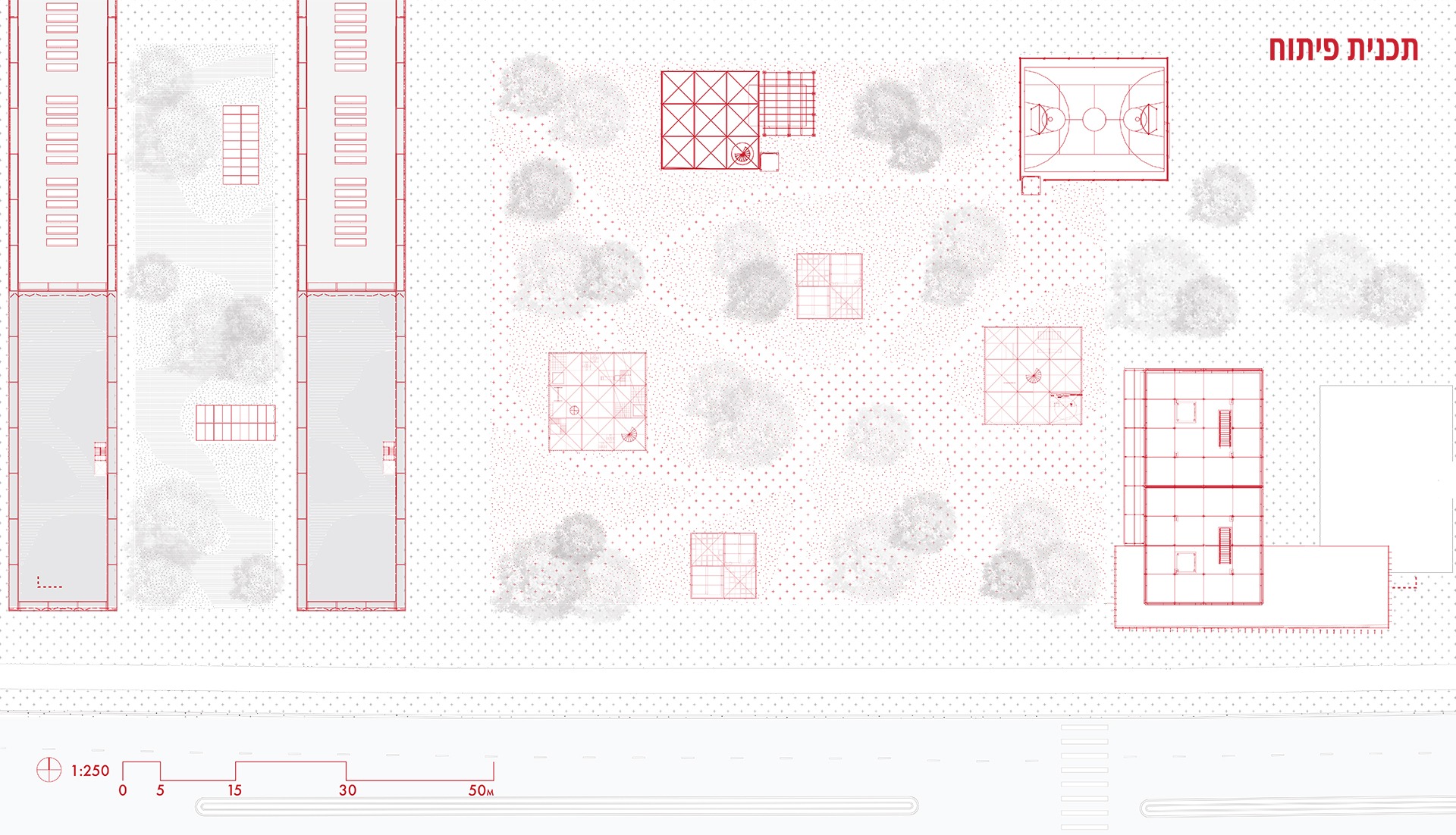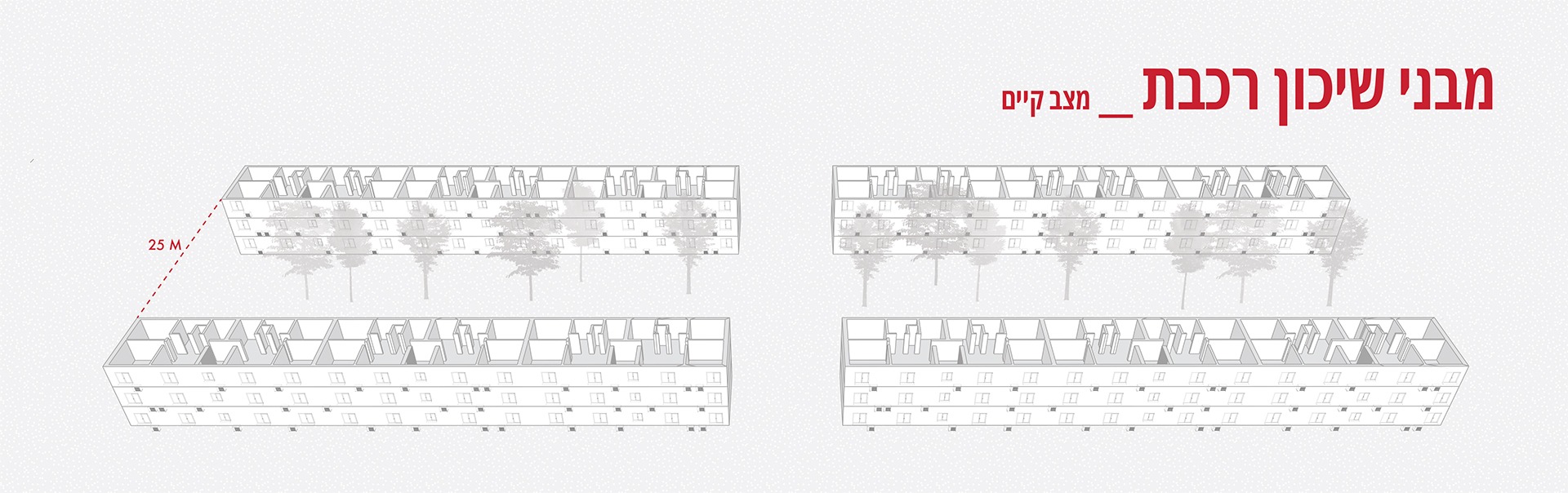 הפרויקט מציע תכנית מתאר ארצית חדשה, המשלבת בין מענה מיידי לצורכי המפונים לבין חידוש מתוכנן של שכונות שיכונים קיימות. המערך המודולרי, המוקם בתוך המרקם הבנוי, מספק פתרון דיור מהיר ובטוח בשעת חירום, ולאחר מכן נטמע בתהליך פיתוח קבוע של השכונה המארחת — כך שכל השקעה בתשתיות חירום מייצרת ערך כפול _ ביטחון ושיפור איכות החיים לאורך זמן.