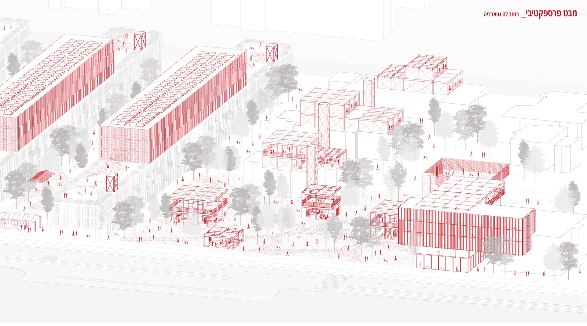 The project proposes a new national master plan that integrates an immediate response to the needs of evacuees with the planned renewal of existing public-housing neighborhoods. The modular framework, established within the existing urban fabric, provides a rapid and safe housing solution in times of emergency, and later becomes an integral part of the neighborhood’s long-term development — ensuring that every investment in emergency infrastructure generates dual value _ enhanced security and improved quality of life.